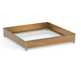 Inspired from antique brass desk trays, our 100% brass escritoire tray come has a clear glass bottom and decorative edging detail. Ball feet complete the look. Perfect for holding desk object or trinkets.