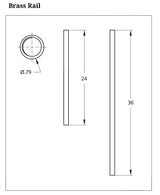 The rails are made with 3/4" solid brass tubing. Each end of the brass tubing is internally threaded to accept a rail connector for extending its length. Middle brackets hide seams when using a rail connector to extend its length.