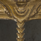 This gold mirror with individualized panes and scrolling details will add elegance and grandeur to any room in your home.