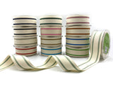 This 1.5 inch wide by 20 yard roll of natural cotton ribbon features two stripes.