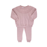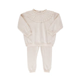 This beautiful two-piece knit set combines classic elegance with cozy comfort, featuring the signature scalloped collar detail that adds sophisticated charm to your little girl's wardrobe. Perfect for special occasions or everyday elegance, this set brings both warmth and style to the colder months.