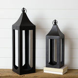 Beautiful black metal lanterns (28" & 22" tall) perfect for outdoor patios, gardens, or indoor décor. Durable construction with timeless elegance.