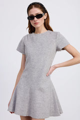 This exquisite mini dress combines contemporary design with sophisticated details, featuring eye-catching asymmetric seam detailing and a flattering fit & flare silhouette. Crafted from a premium wool-blend fabric with full lining, this dress brings both elegance and comfort to your special occasion wardrobe with its modern, architectural appeal.
