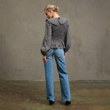 - Ruffled Collar Detail: Delicate ruffle trim that enhances the collar's romantic appeal