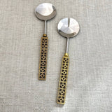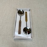 The Gold Cut Out Servers is a stunning addition to any home's serverware collection. These elegant salad servers are perfect for special occasions such as weddings or as thoughtful gifts. Crafted with a combination of stainless steel and brass, these servers exude a luxurious and sophisticated vibe. The gold accents on the handles add a touch of opulence, making them a standout piece on any dining table. With their sleek design and durable construction, these salad servers are not only beautiful but also practical for everyday use.