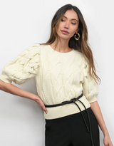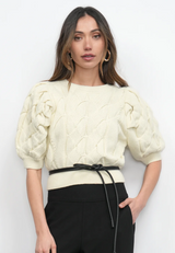 Hallie Cable Knit Puff Sleeve Sweater Top
