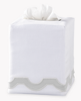 In 100% linen with a sateen appliqué trim, the Mirasol tissue box cover pairs with the top-selling bedding collection of the same name. In a home where no detail goes unconsidered, this playful and sophisticated style makes a beautiful addition to a bedroom or bathroom.