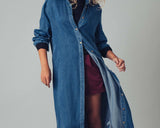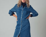 Embrace effortless style with this Button-Down Western Denim Midi Dress!