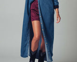 Whether you're running errands, meeting friends for brunch, or enjoying a weekend getaway, this Button-Down Western Denim Midi Dress delivers the perfect combination of style, comfort, and versatility! Effortless button-down western denim midi dress in soft 100% Lyocell. Adjustable roll-tab sleeves and relaxed fit. Shop now!