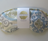 This soothing eye pillow is constructed with a generous cotton muslin inner pack, filled with grains and lavender. The flax seed filling molds to the face, provides weight and blocks out light for complete relaxation. The relaxing lavender scent soothes and calms. When heated in the microwave, it will provide moist therapeutics heat to relieve stress, and ease tension. Can also be chilled in the freezer in a ziplock bag to relieve swelling and pain from injuries.