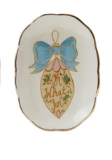 This exquisite stoneware dish combines festive holiday imagery with luxurious gold electroplating trim, creating a sophisticated accent piece that's perfect for seasonal entertaining. The delicate scalloped edges add graceful detail, while the multi-color holiday designs bring warmth and joy to your décor.