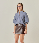 Step into effortless style with our Striped Balloon Sleeve Shirt. Designed with crisp vertical stripes and voluminous balloon sleeves, this top brings a modern twist to a timeless button-down. The relaxed fit and breathable fabric keep you comfortable while adding a polished edge to any look. Pair it with tailored shorts, a mini skirt, or denim for chic versatility that works year-round.