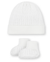 Our timeless beanie and bootie set in soft organic cotton sweater knit is the perfect outfit completer to our range of cozy rompers, tops, and bottoms for baby. Set includes a matching beanie and bootie with rib trim. Perfect as a baby shower gift or an heirloom piece for your family.
