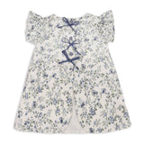 Introducing our Celia Floral Muslin Baby Blouse with Bow Details and Bloomer, crafted from 100% organic cotton Swiss dot muslin, where softness meets elegance in every stitch.