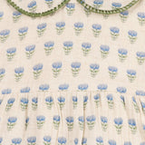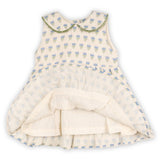 Introducing our charming Harper Floral Baby Dress and Bloomer set, thoughtfully crafted from natural linen blend for the ultimate comfort and breathability. This delightful ensemble combines the timeless elegance of linen with the whimsical block print inspired blue floral, creating a versatile and adorable outfit for your little one.