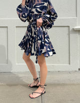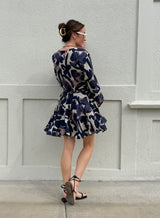Embrace effortless elegance with our Abstract Floral Mini Dress, a stunning piece that combines artistic flair with feminine sophistication. This eye-catching dress features a bold navy and cream abstract floral print that makes a statement wherever you go.