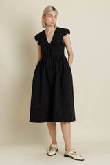 Our model is 5'9" and wears a size Small. The premium cotton eyelet fabric is easy to care for and becomes softer with each wear, ensuring this dress remains a cherished wardrobe staple for years to come.