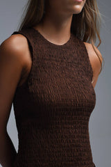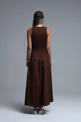 The Maxi Brown Smocked Poplin Dress is an elegant and versatile garment ideal for various occasions.