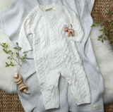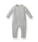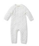 This classic cable knit sweater romper in our signature super soft 100% organic cotton will be the heirloom piece for your baby that you hold onto forever. Dressing baby is easy with button openings at both the shoulder and inner legs. Your baby has never looked more cozy and cute!