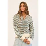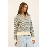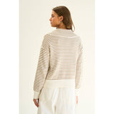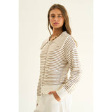 Striped Zip-Up Sweater - Cotton Blend Cardigan with Wide Collar | The Fox Market