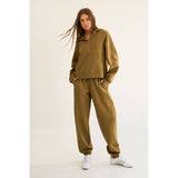 This versatile hoodie works beautifully with jeans for a classic casual look, pairs perfectly with the matching textured joggers for a coordinated set, or can be layered over dresses for an effortlessly cool vibe. The half-zip design makes it easy to adjust your look and layer with other pieces.