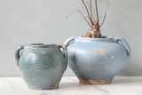 This vintage-inspired vessel bears unique markings that echo the charm of a well-worn past. The trending blue hues add a charming touch and calming energy into your interior. Add florals or greenery for use as a chic planter or leave empty for a statement shelf styler. Best en masse for a dramatic statement.
