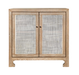 TWO DOOR CANE CABINET WITH BRASS HARDWARE IN CERUSED OAK OR