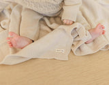 Leo blanket is a 100% cotton knit blanket measuring 42X30 inches