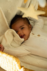 Indulge in sweet dreams with the Celestial Cotton Mache Mobile. As if looking up to the sky, clouds, moons, and stars float above the crib creating a soothing atmosphere to lull your little one into a peaceful slumber. This mobile serves as charming decor for both stylish nurseries and boho-inspired baby rooms.