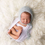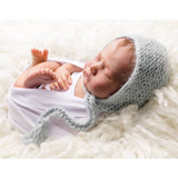 Sized just for newborns. Fits most newborns 6-9 pounds. 100% acrylic. Cold handwash. Hand-knit in China.