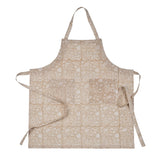 Beautiful block print apron with fresh neutral pattern. Adjustable neck tie for custom fit. Machine washable. Perfect for cooking and baking. Shop now!