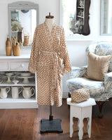 Our Charlotte print is featured in a lovely shade of soft, mellow caramel brown. Our cosmetic bags are constructed from a quilted block-printed cotton.