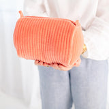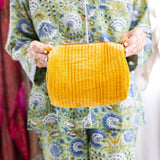 Add some personal style to your travel and everyday essentials with this lovely pouch. Crafted from quilted velvet and lined with a hand block print fabric made with the time-honored tradition of Indian block printing.