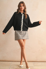 Embrace feminine elegance with this Button Front Lace Trim Knitted Cardigan!