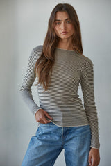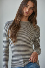The mock neck creates a polished, contemporary look that's perfect for both casual and dressy occasions. The classic striped pattern adds visual interest while remaining versatile enough to pair with virtually any bottom.