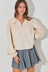 Whether you're creating a vintage-inspired look or simply love feminine details, this Round Collared Button Up brings sweet charm and sophisticated style to every outfit!