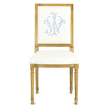The Baker Side is regal yet fresh and current. There is a sophistication to the square back with its elegant geometry and proportional clean lines. All merge perfectly to frame a custom monogram on the front or back of the chair. The Baker Side will perform beautifully in literally every room of your home.