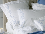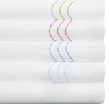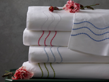 Rolling waves of pearl stitch detailing add subtle, shapely style to our white Sierra percale sheeting of 350 thread count long-staple cotton. Cheerful color adds just enough punch.