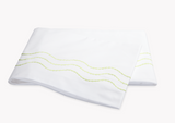 Rolling waves of pearl stitch detailing add subtle, shapely style to our white Sierra percale sheeting of 350 thread count long-staple cotton. Cheerful color adds just enough punch.