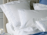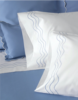 Rolling waves of pearl stitch detailing add subtle, shapely style to our white Sierra percale sheeting of 350 thread count long-staple cotton. Cheerful color adds just enough punch.