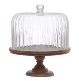 Acacia Wood Pedestal with Fluted Glass Cloche