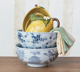 This Aviary Garden Stoneware Bowl is a delightful fusion of art and utility. The entire surface, both inside and out, is a canvas for the charming blue birds and flowers that seem to come alive with each glance. The round shape and generous size make it perfect for a family meal or as a centerpiece that holds seasonal fruits. It's a piece that tells a story of tradition and craftsmanship, inviting a touch of the pastoral and the poetic into daily life. It measures 10 inches in diameter and 4.25 inches in height, offering ample space for a variety of uses. Whether it graces a farmhouse brunch or a refined dinner party, this bowl is sure to enchant and inspire.