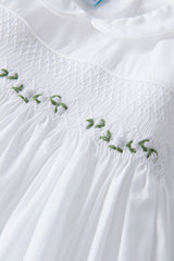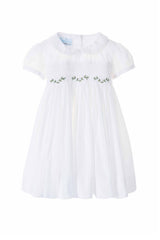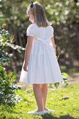 Blanche is the perfect Holy Communion, Christening/Baptism and flower girl dress with its delicate smocking and all white flower embroidery.