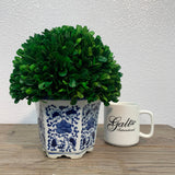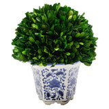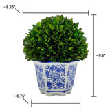 Boxwood Ball Topiary in Hexagon Blue & White Ceramic Pot