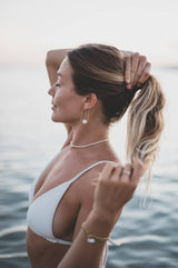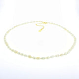 This gorgeous necklace features a strand on 3-4mm natural seed pearl, strung by hand to a length of 14 inches. This necklace has a 2 inch extender chain making it the perfect choker and layering piece! * 3mm-4mm Seed Pearls * 14 inch length, 2 inch extender chain * Shiny finish * Available in Sterling Silver and Gold Vermeil This piece was designed by Courtney Legenhausen Meet our Designers