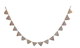 The hand-woven cotton crocheted pennant garland in a vibrant multicolor design is an ideal decorative piece to add a touch of whimsy and charm to any space. Made from high-quality, soft cotton, this garland measures 72 inches long, providing ample length for versatile styling options. Each pennant on the garland is meticulously hand-woven and crocheted, showcasing the artisanal craftsmanship that goes into its creation. The multicolor palette adds a playful and festive atmosphere, making it perfect for casual gatherings or parties. Whether it's strung across a mantel, draped along a wall, or hung in a child's room, this garland effortlessly elevates any area.