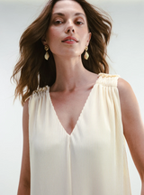 This dress is so easy to wear and dress up or down with shoes, a belt or outerwear. We love the raw lettuce edge detail on the shoulders, and the plisse fabric (with lining underneath) gives it the perfect amount of texture. Wear it to a casual outing, or to a formal event and everything in-between, remembering to embrace life’s ebbs and flows.