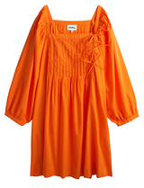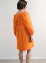 This is the ultimate one-and-done dress. Made of lightweight cotton, it has a flattering silhouette that’s perfect for warm weather. With functional tie details, beautiful pleating and a fun blousant sleeve, it is versatile and can be dressed up or down! With an easy feeling, it reminds you to embracechildlike joy.