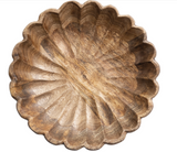 8" Round x 2"H Mango Wood Scalloped Bowl, Natural