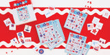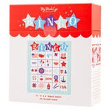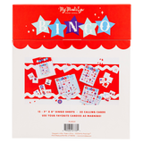 Get ready for a bingo game with a twist of Americana! This game is perfect for a fun-filled night with family or friends. Enjoy the classic bingo game with a unique American twist, adding a touch of excitement and patriotic fun. Get your game on with our Americana Bingo! • 15 7" x 8" unique bingo sheets • 32 calling chipboard cards • included in a nice chipboard board for storage